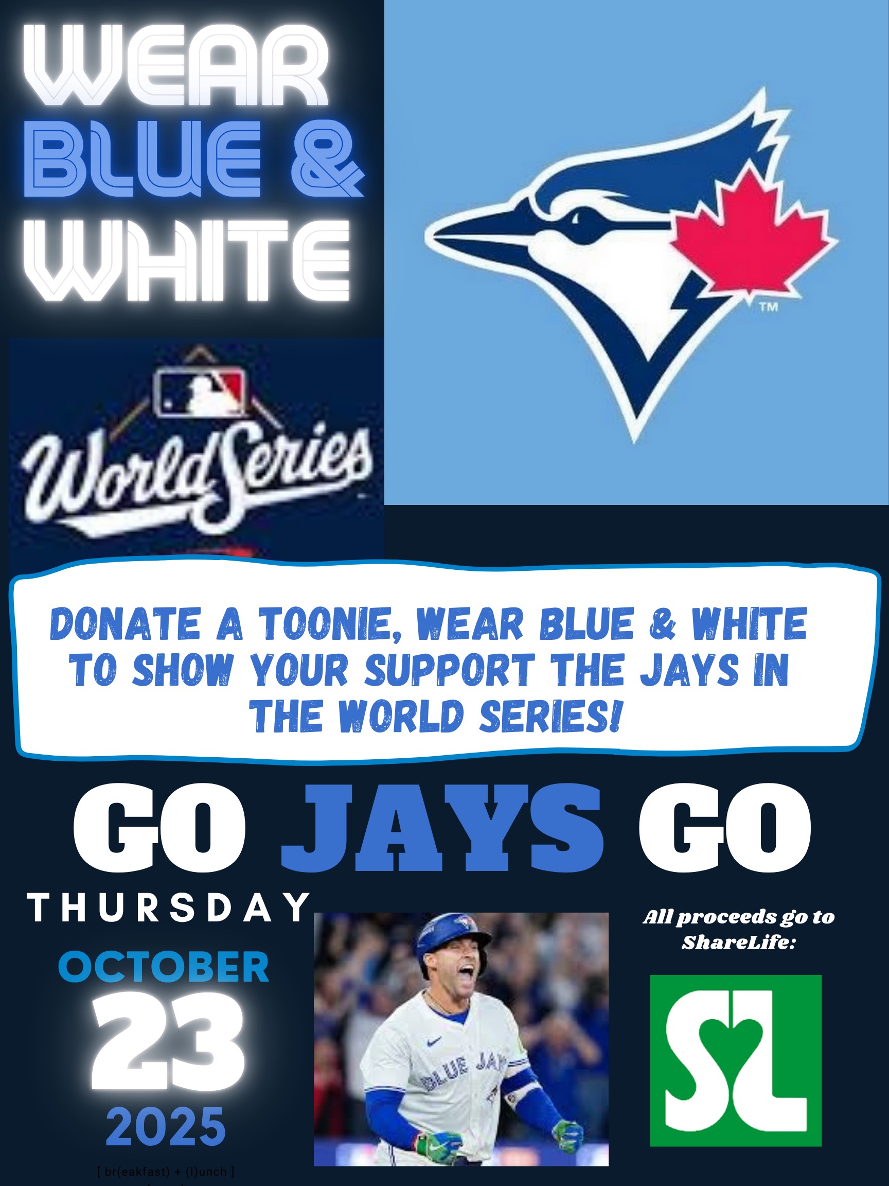 WEAR BLUE & WHITE DAY – OCT 23RD – SUPPORT SHARELIFE AND BLUE JAYS