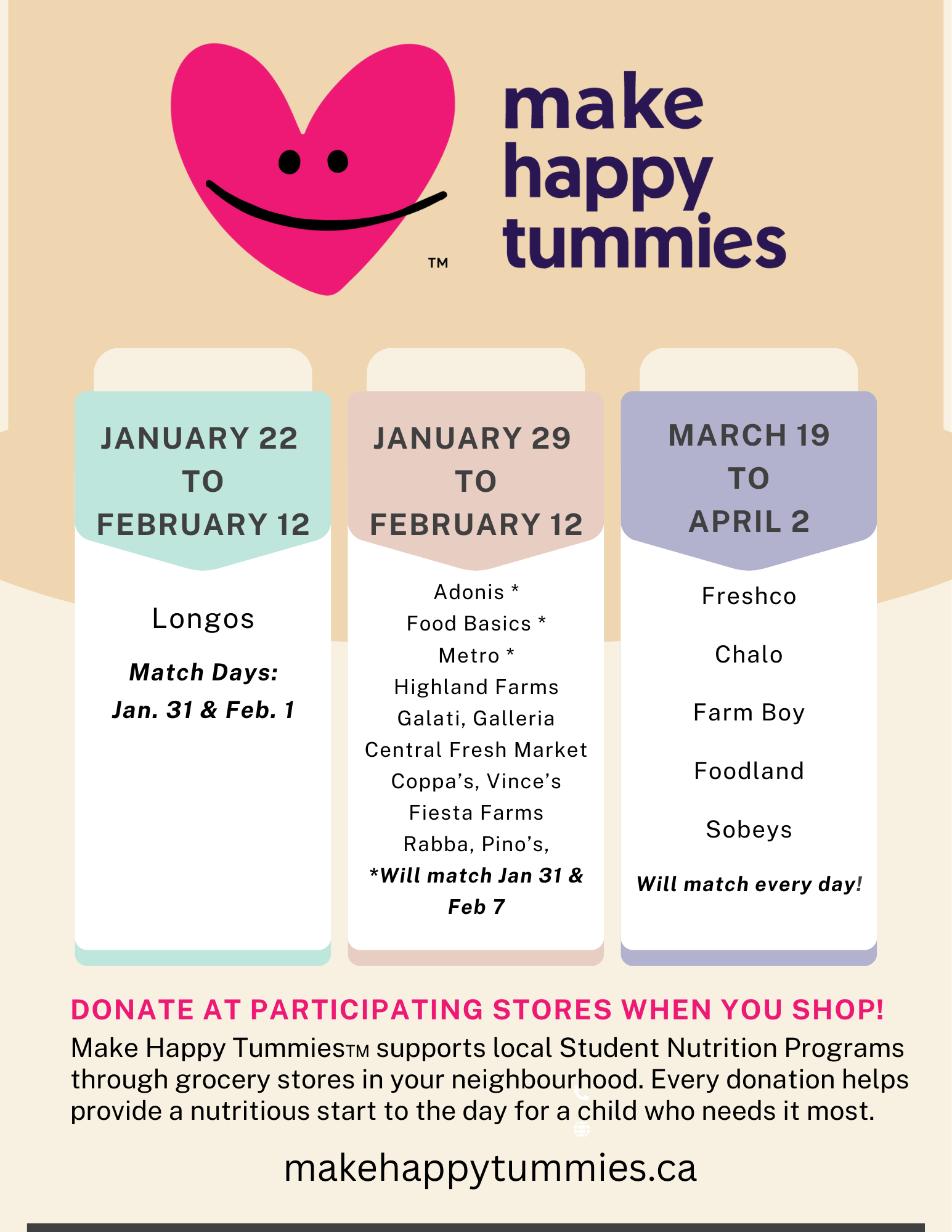 The Make Happy Tummies campaign for Student Nutrition starts this Thursday January 22. This is...